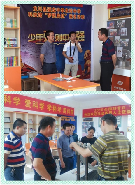 此外,张碧华副馆长还前往龙川县迴龙中学,参观了该校“农村中学科技馆”、学生作品展览室、创新综合实践室等相关科技教育设施,与龙川县科协负责人、学校负责人、科技教师交流,共同探讨农村中学发挥各级科协科普资源、服务学校科技教育、提高青少年科学素质的思路和路径。