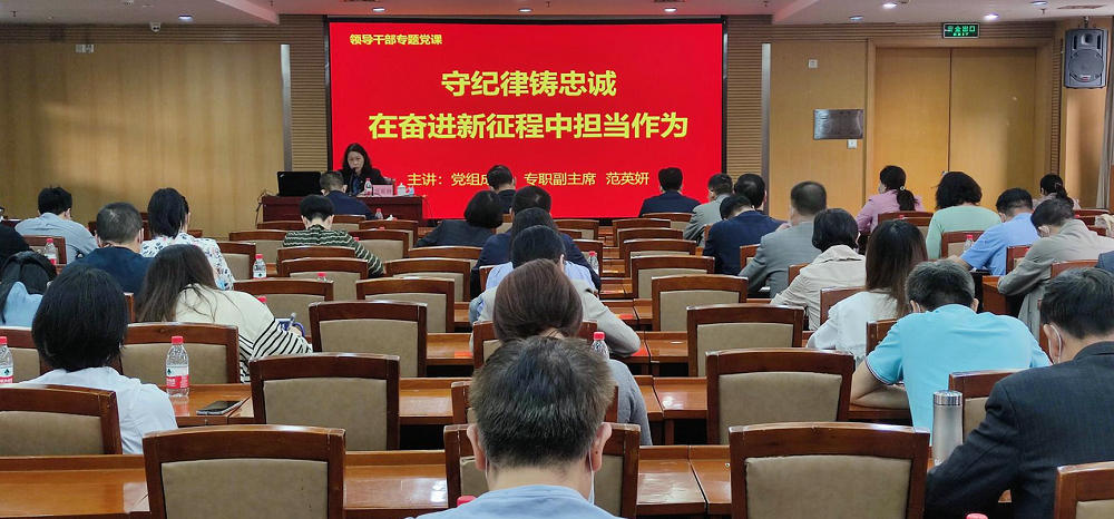 为深入学习贯彻党的十九届六中全会精神,推进党史学习教育走深走实,11月19日,省科协在广东科学馆举办“学党史悟思想、守纪律铸忠诚”专题党课活动,党组成员、专职副主席范英妍作主讲。党组书记、专职副主席郑庆顺,党组成员、专职副主席林晓湧,二级巡视员陈慧钦,直属机关全体党员干部参加会议,省委党史学习教育第十七巡回指导组同志到会指导。