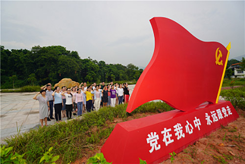 在“党在我心中,永远跟党走”主题公园,党员同志们面对党旗,重温了入党誓词,不忘入党初心,庄严宣誓,对党忠诚,为共产主义奋斗终生。