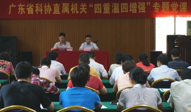 上午,冯日光同志以“坚持在平凡工作中滋养伟大情怀”为题,主讲了一堂题“四重温四增强”专题党课。冯日光指出,“四重温四增强”活动是省直机关工委2015年党建工作的一项重要举措,也是省科协直属机关“三严三实”专题教育一个重要组成内容,在新常态下,“四重温四增强”对党员干部的党性锤炼有着重要意义和起到积极作用。