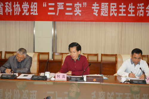 根据省纪委、省委组织部的部署要求,1月5日下午,省科协党组用半天的时间召开“三严三实”专题民主生活会。省科协党组书记、副主席何真主持会议,代表党组作对照检查并作总结。省科协党组成员逐一进行对照检查,开展了严肃认真的批评与自我批评。