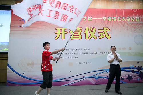 8月6日上午,由中国科协、教育部主办,中山大学、华南理工大学、省科协和省教育厅承办的2012年全国青少年高校科学营广东营活动在广州正式开营,来自广东、广西两省区的230多名师生参加了活动。省科协副主席吴焕泉、华南理工大学党委副书记张振刚和省教育厅副厅长朱超华、中山大学中山大学党委副书记朱孔军分别参加了华南理工大学分营和中山大学分营的开营仪式。