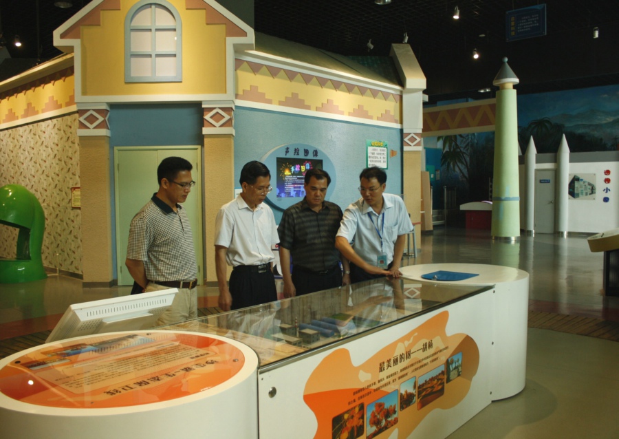 图为何真书记(左二)一行考察惠州科技馆