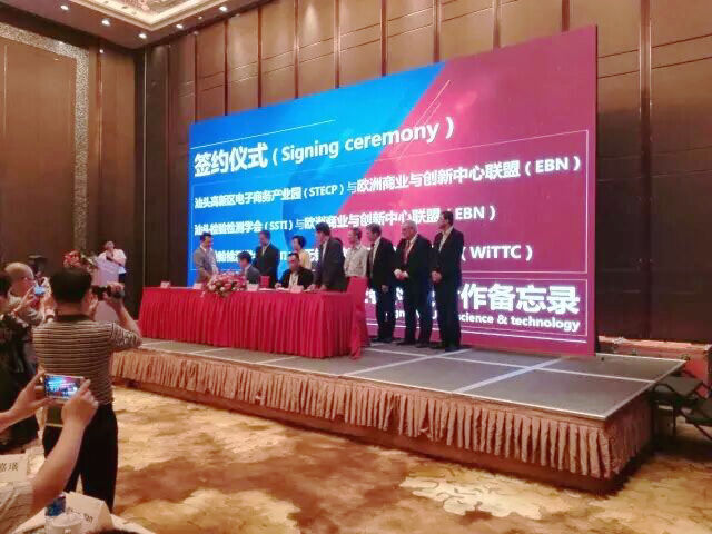 2015年11月5日至8日,由广东省科协、汕头市科协、汕头华侨试验区、市外事局主办,中国科协海智计划广东(汕头)工作基地承办的中欧(汕头)中小企业科技创新合作峰会在汕头举行。会议邀请了欧洲商业与创新中心联盟(EBN)、西班牙国家科技创新园协会(ANCES)主席Álvaro Simón de Blas先生,EBN芬兰董事、芬兰赫德米亚商业发展公司总经理Pekka Jussila先生,芬兰赫德米亚商业发展公司中国业务总监Timo Hahtala先生,EBN中国总代表无锡中欧国际技术转移中心有限公司总经理、中国科协海智计划专家斯航先生一行莅汕,向汕头中小企业推介欧洲创新投资环境、企业、科技项目,为中欧双方开展科技交流合作搭建新平台,创造共赢发展新机遇。峰会以“中小企业·创新合作”为主题,旨在依托华侨试验区,利用中国科协海智计划广东(汕头)工作基地这个高端国际科技人才交流平台,以创新的方式引入国外前沿科技资源,创造投融资与项目合作的契机,搭建中欧(汕头)中小企业科技创新合作的桥梁。