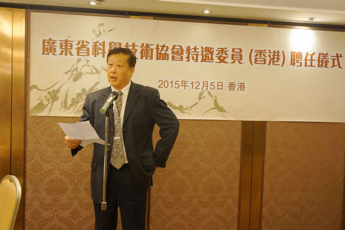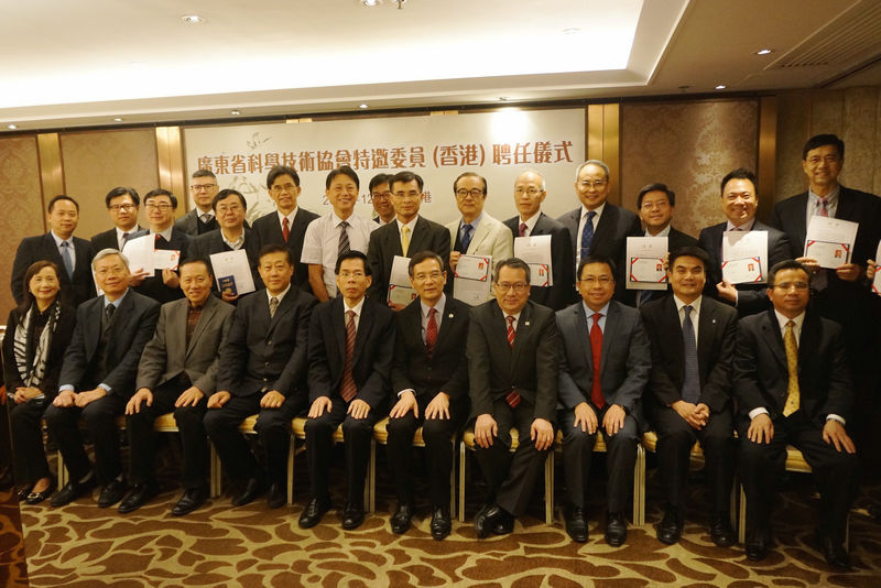 12月5日,广东省科协在香港举行隆重颁授仪式,聘请16位香港科技界精英人士作为广东省科协第八届委员会香港特邀委员。省科协党组书记、常务副主席何真,省科协党组成员、专职副主席冯日光赴港为香港的特邀委员们颁发委员证及聘书。