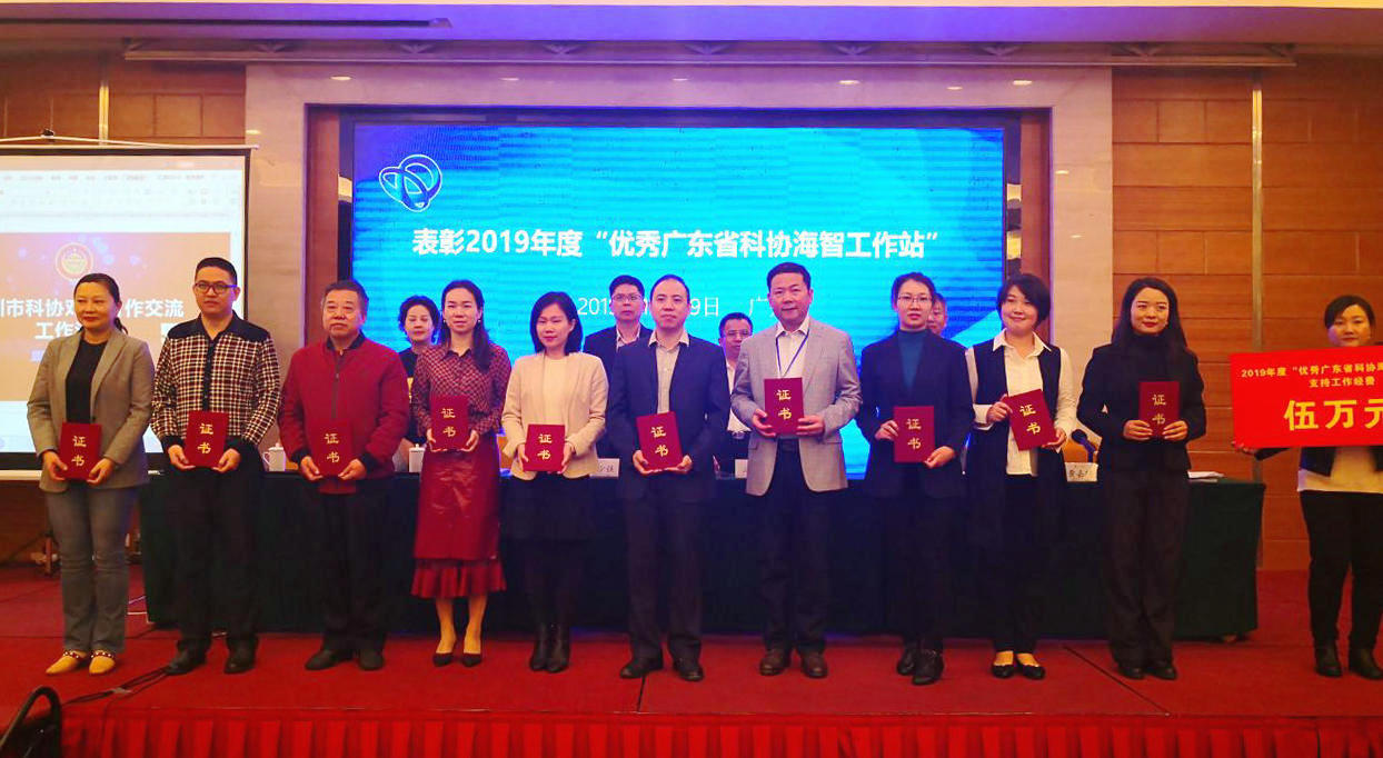 为2019年“优秀广东省科协海智工作站”颁发证书及工作经费