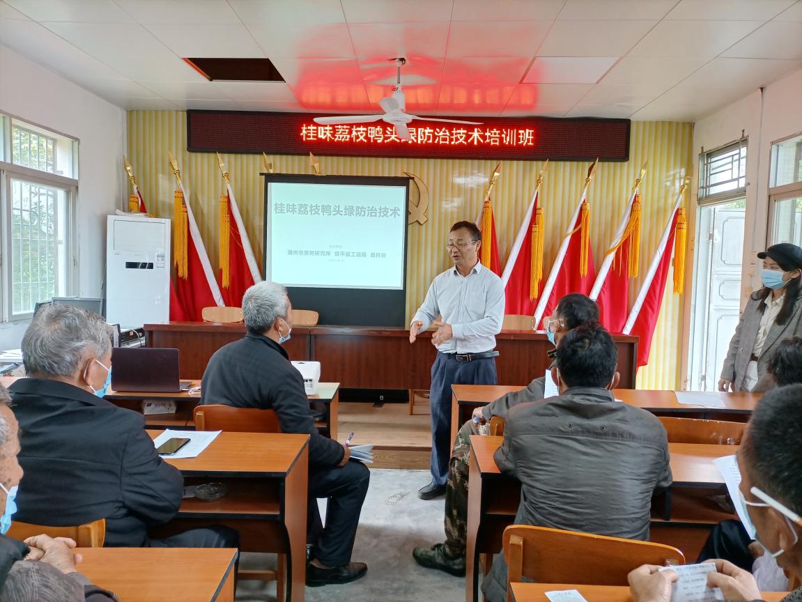 潮州市饶平县科协将“干部思想作风转变”整改提升贯穿到科普工作中,推动党员干部下沉一线服务群众,提高农村科技服务和科学普及的精确性。在前期深入农村调研科普工作的基础上,针对荔枝上普遍容易发生“鸭头绿”病害,严重影响果实商品外观,导致价格降低的情况,4月21日,潮州市饶平县科协联合市果树研究所、县工信局等单位在浮山镇麻湖村开展饶平县科技下乡活动暨浮山镇麻湖村桂味“鸭头绿”防治技术培训班,培养一批具有科学技术素养的技术骨干和农村致富带头人,营造崇尚创新的浓厚氛围。