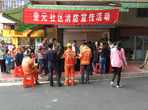 为进一步增强居民的消防安全意识,帮助居民掌握必须的消防知识和安全常识,提高自我保护能力,潮州市湘桥区奎元社区居委会于“11?9消防宣传日”联合市公安消防部门,在奎元社区开展“消防知识进社区”科普宣传活动,进一步深化“九九消防平安行动”。