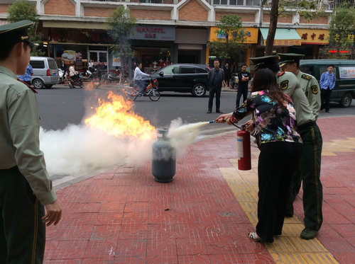 当天活动中,社区居委会以“找火灾隐患,保家庭平安”为主题,邀请消防官兵深入奎元住宅小区,为居民普及家庭用火、用电、用气防火安全知识,并通过实地演练,向居民传授手提式灭火器、消防水袋、水枪等的使用方法,同时组织社区广大志愿者开展消防疏散通道检查整治行动。