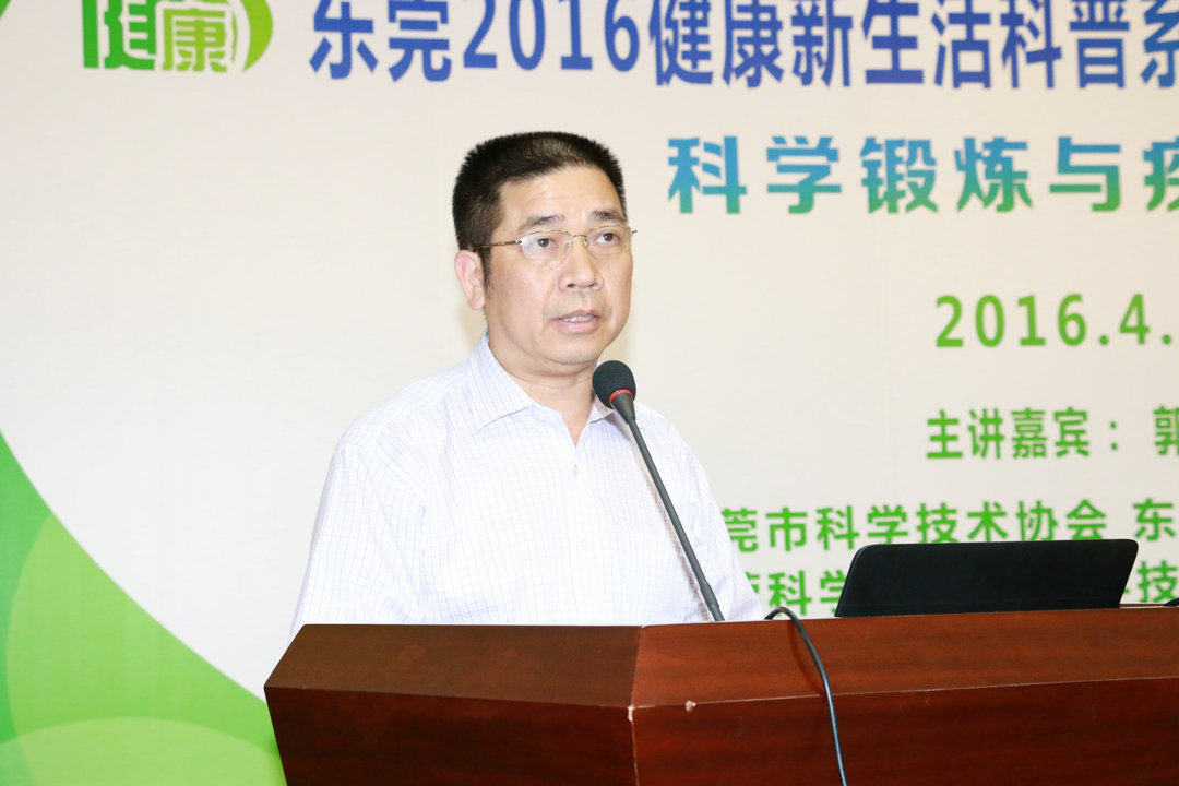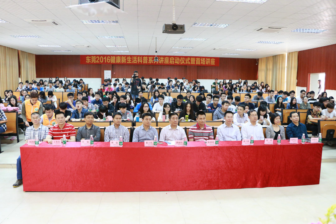 东莞2016“健康新生活”系列活动启动仪式暨学锻炼与疾病预防讲座于4月12日上午在广东科技学院隆重举行。东莞市科学技术协会副调研员谭德阳、科普部部长黎鹤龄,东莞市人民医院副院长陈国明、副科长丁荏芬,东莞中医院副院长蔡立民,东莞科学馆馆长黄立强、副馆长刘凤云,南城科技办主任南城科协主席林强,广东科技学院副院长周二勇、院长助理李国年、科研处处长刘剑清,广东省东莞国药集团有限公司董事长、总经理叶副等领导嘉宾出席了启动仪式及讲座。