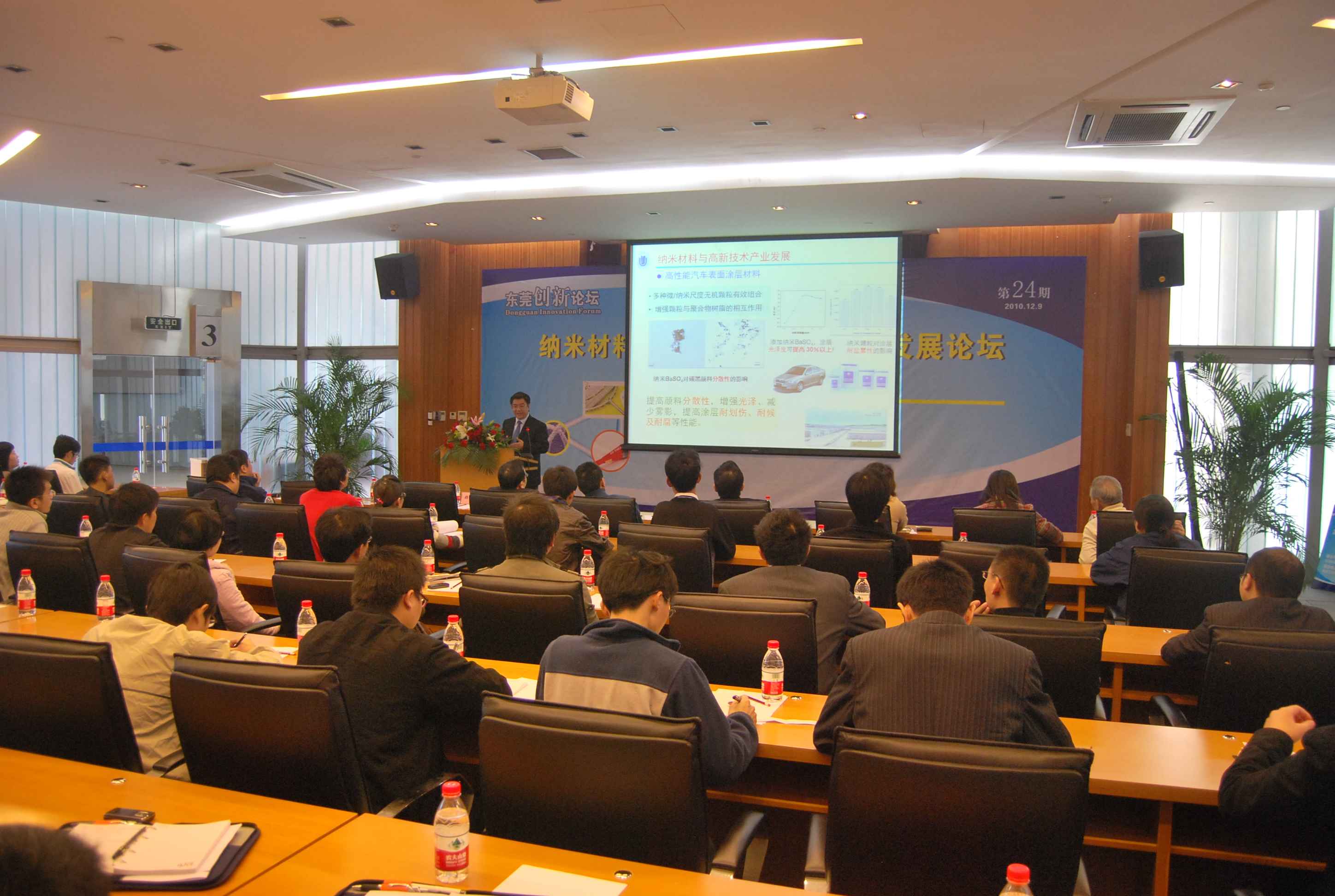 由东莞市科学技术协会、市科学技术局主办,东莞科学馆、东莞市博士创业促进会、东莞市科学技术协会学会部共同承办的东莞市2010年第二十四期创新论坛——“纳米材料应用与高新技术产业发展”论坛于12月9日(星期四)上午9:30-11:30在松山湖学术交流中心一楼3号报告厅举行。与会人员包括市科协、市科学馆、松山湖管委会的有关领导,东莞市博士创业促进会会员,市各大企业、科研机构、高校的代表80多人。
