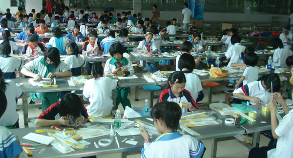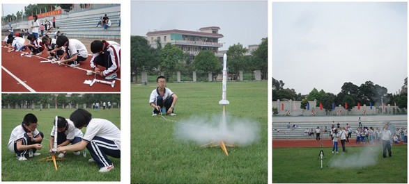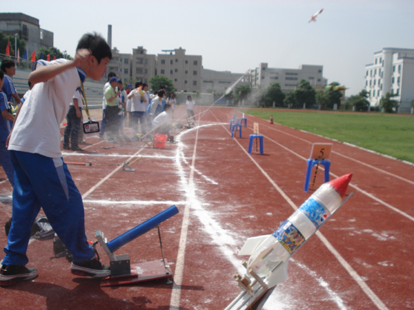 “嗖、嗖……”,一枚枚“火箭”拔地而起,直冲云霄;一架架“飞机”从头顶盘旋而过,与“火箭”在空中交相辉映,不时引来现场上千名师生的惊呼声。这是2011年东莞市中小学航空航天模型比赛现场。5月25~26日,全市108所学校的874名选手在寮步香市中学,上演了一场场航模大战。同学们用梦想征服了蓝天,收获了成功的喜悦。