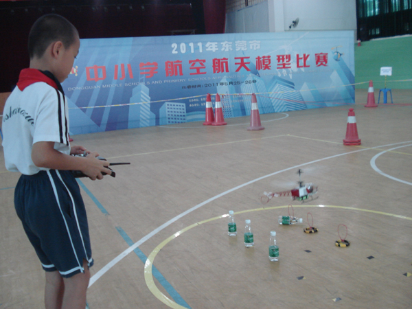 遥控航模项目已成为东莞市优势项目,选手们操作水平明显提高。遥控模型飞机绕标竞速赛竞争十分激烈。由2010年能完成12圈以上的不超过10名,提高到今年的38名选手突破12圈成绩。且获得15圈的好成绩也不再是一两名选手的梦想,小学男子组寮步横坑小学何嘉彬、小学女子组寮步横坑小学张燕蕾,中学男子组寮步香市中学钟铸豪均以15圈佳绩获小组冠军。