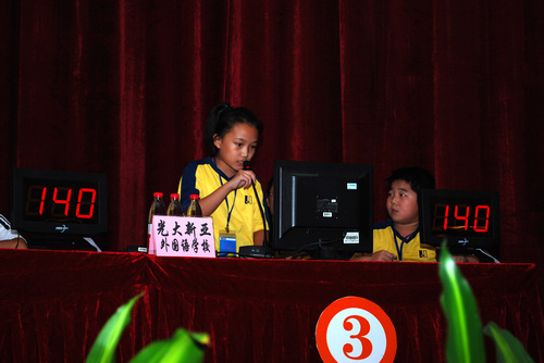 “天王星围绕太阳公转一周需要多少地球年?”、“地球上哪个地区全年昼夜等长?”……决赛中,场上的6支队伍的选手们答题你争我抢,气氛热烈;场下的观众也积极参与。经过必答题、抢答题、风险题等3轮赛题的考验,最终凤岗镇中心小学代表队获得全场最高分,莞城英文实验小学代表队和茶山镇中心小学代表队获得一等奖,莞城中心小学、步步高小学和光大新亚外国语学校获二等奖。他们将代表东莞市参加2011年广东省中小学天文奥林匹克竞赛。
