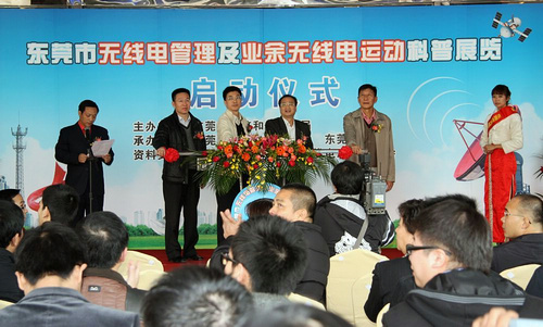 广东省经济和信息化委员会无线电管理处处长吴海燕、东莞市经济和信息化局副局长刘炯贤、东莞市无线电运动协会荣誉会长陈卓炜、东莞科学馆馆长黄立强、东莞科学馆副馆长刘凤云、东莞市国土局、规划局、公安局、城管局、文广新局、海事局、电信局、东莞移动、东莞联通的领导,各镇街经贸办的领导,各友好机构、协会和会员代表,师生代表共约300人参加了开幕仪式。