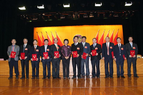 东莞市委常委李小梅为市科协八届主席、副主席颁发了证书
