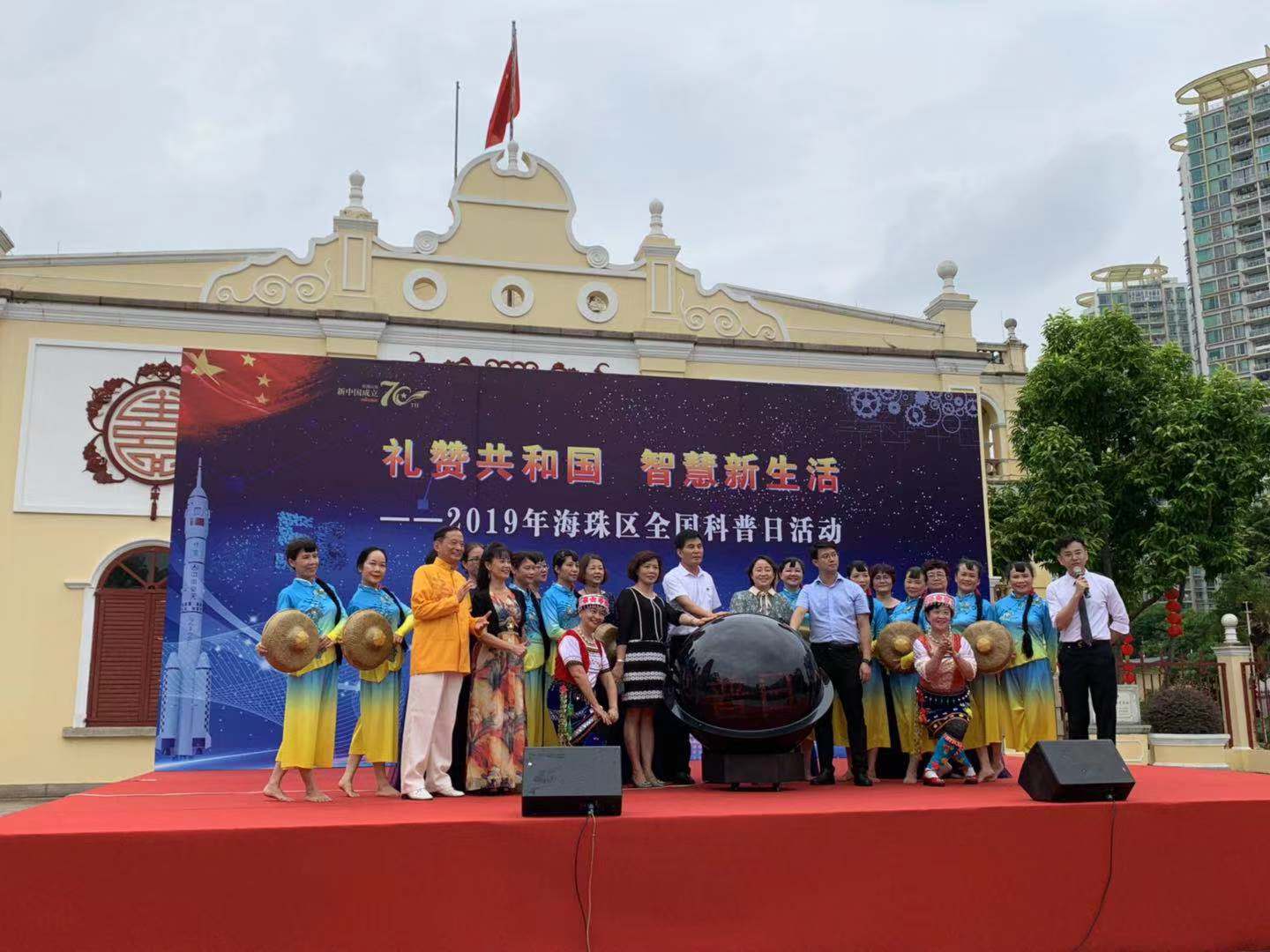 9月16日上午,由广州市海珠区科学技术协会,海珠区科工商信局,海珠区滨江街党工委、办事处联合举办的以“礼赞共和国、智慧新生活”为主题的2019年海珠区全国科普日主会场活动在大元帅府广场举行。区科协戴锡祥主席为活动致辞,参加活动领导一起为启动仪式亮灯,揭开了为期一周的广州市全国科普日的序幕。据统计,从早上8:00开始直到中午12:00,近上千市民进场参加科普日主会场活动。
