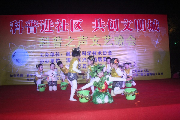 12月20日晚上,由河源市源城区科学技术协会主办,兴源路居委会、源城区异地务工人员互助联合会协办的“科普进社区·共创文明城”科普之声文艺晚会在茶山公园精彩上演,晚会以文艺表演和科普知识问答的形式进行,把科普宣传送进社区。