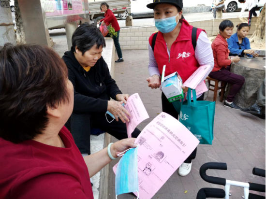 为做好新型冠状病毒感染的肺炎疫情应急科普工作,弘霞客印制了两万份科普宣传单张,准备了五千个医用口罩,由科普宣传员走进大街小巷给市民派发。并且为市民讲解科学的防控方法和正确配戴口罩的方式。还在居民活动广场拉横幅告示。