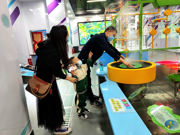 孩子们和爸爸妈妈一起畅游于市科技馆的各个展厅,他们一会儿好奇的与导览机器人互动咨询,一会儿随着科技辅导员参观讲解,一会儿亲子之间你问我答,现场气氛热烈。