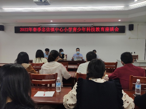 座谈会上,黄桂花听取了忠信镇各学校近年来青少年科教工作开展情况汇报,并为大家解答了科技创新大赛相关问题,收集了青少年科教工作相关意见建议。黄桂花对忠信镇各学校开展青少年科教工作提出了两点建议。一是要提高思想认识,高度重视青少年科教工作,结合青少年心理、生理、年龄等特点,组织开展丰富多彩的科教活动;二是要根据学校自身实际,打造科普特色品牌,不断提高各校科技教育品牌辐射和带动效应。