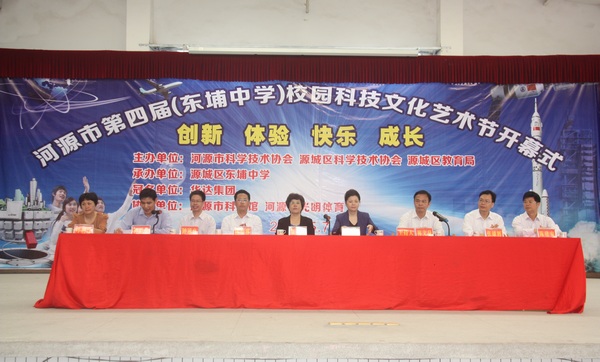 5月7日,河源市第四届校园科技文化艺术节在源城区东埔中学开幕。源城区副书记林文泉主持开幕式。河源市委常委、统战部长张丽萍,河源市人大副主任、科协主席吴素香,河源市科协党组书记、副主席陈春林,河源市科协党组成员、副主席钟道良出席开幕式。源城区各中小学校师生代表,以及东埔中学1000多名学生参加开幕式。