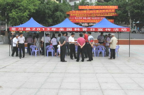 9月12日上午,河源市龙川县2013年“全国科普日”宣传活动在县城车站公园举行,龙川县科普画廊同时启用。中共龙川县委副书记钟碧平、龙川县人民政府副县长李春辉亲临活动现场,并指导宣传工作。当地干部群众约500多人参加活动。
