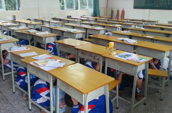学生们开展应急避险疏散演练