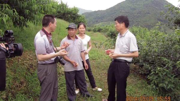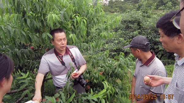 5月25日,连平县科协结合开展党的群众路线教育实践活动,邀请仲恺农业工程学院柳建良教授到上坪镇小水村鹰嘴蜜桃基地进行技术指导。