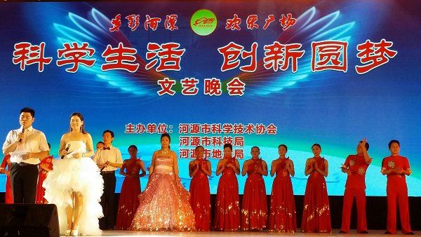 7月1日,河源市科协、市科技局在市区文化广场联合举办以“科学生活·创新圆梦”为主题的“多彩河源·欢乐广场”文艺晚会。
