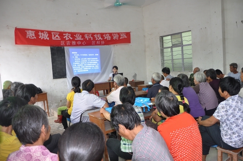 春耕时节,为及时向农民推广新的农村实用种养技术知识,不断提高农民的生产技术水平,近期,惠州市惠城区科协联合区农推中民心深入到农村开展系列农业科技培训班。2015年5月7日上午,在汝湖沙洲屋村举办以“红火蚁安全防控、甜玉米主要病虫害发生与防治”为主要内容的农业科技培训班,邀请区农推中心刘志红农艺师到现场授课,80多名种植户参加了培训。