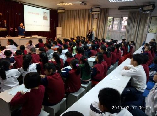图为3月7日,中国人民解放军总医院原免疫学研究室主任、教授,医学博士,日本东京大学博士后陈钰分别为东江小学、一小师生作科普报告。