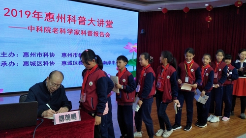 3月11-15日,2019年惠州科普大讲堂—中国科学院老科学家科普演讲团系列科普报告会在惠城区开讲,此次活动惠城区科协邀请了中国科学院老科学家科普演讲团八位科学家来惠城区举行巡回科普报告,目的是为进一步贯彻落实习近平新时代中国特色社会主义思想和十九大精神,实施《全民科学素质行动计划纲要》,普及科学知识、传播科学思想、倡导科学方法、弘扬科学精神,进一步提高广大公众特别是青少年的科学素质。