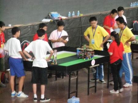 7月18~22日,由中国科协和河南省人民政府共同主办的第十一届中国青少年机器人竞赛在郑州市隆重举行,全国共有省、市、自治区的33个代表团499支代表队参赛。赛项包括高中、初中和小学三个组别的机器人创意、基本技能、足球、FLL工程挑战和VEX工程挑战赛等。广东省选拔了23支优秀代表队参加本届竞赛,其中惠州市惠城区的河南岸中学、市九中的机器人队分别参加了初中组的基本技能和足球项目的比赛。
