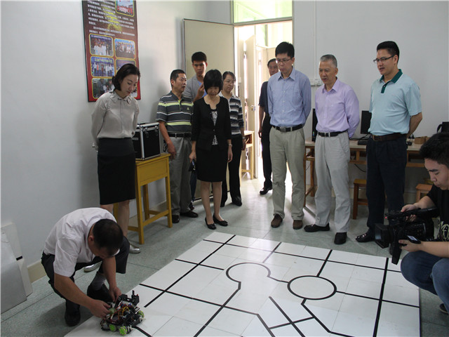 检查组一行首先前往了惠州市级科学教育特色学校惠东中学考察,现场察看了科普长廊、机器人活动室和科技活动室,并听取了惠东中学科技创新教育工作汇报,了解青少年科技创新方面的情况。
