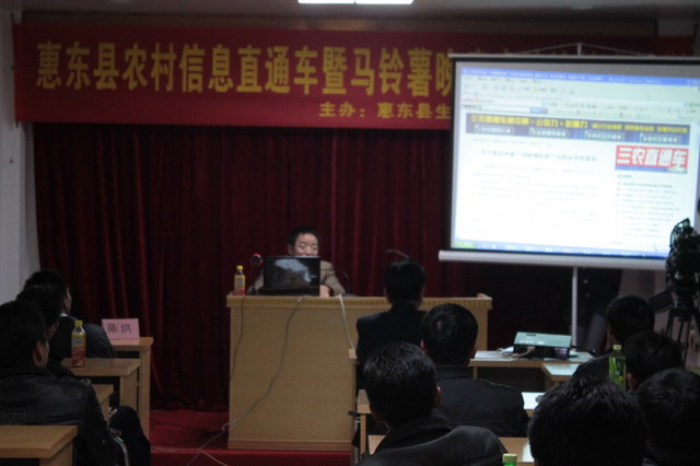 培训班上,惠东县科协主席、高级农艺师陈洪向农户系统讲述了影响晚疫病发生流行条件及科学防治办法,提高了农户马铃薯的防病治病技术水平,接着,向农户详细介绍了惠东直通车网站栏目和功能,并进行了现场应用示范,教会农民如何运用现代信息技术发展农业。