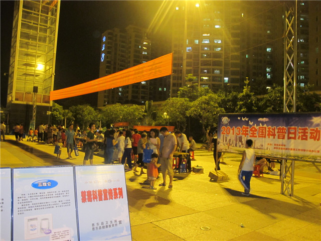 9月12日晚,惠州市惠东县2013年“全国科普日”大型宣传活动在惠东文化广场拉开序幕。