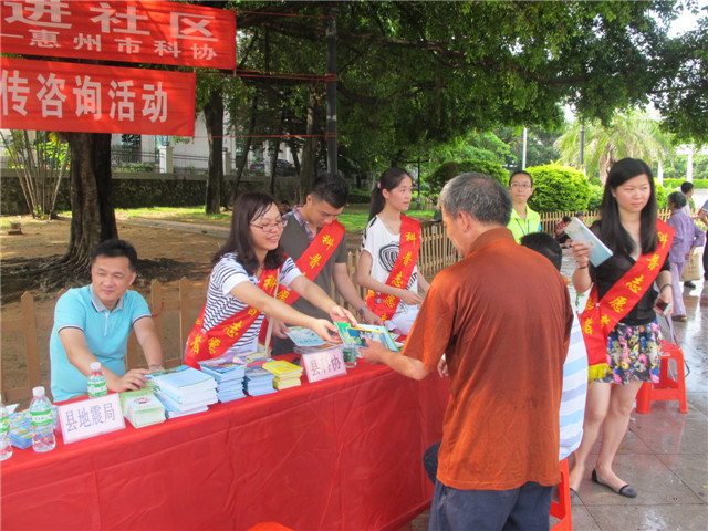6月18日上午,惠东县科协联合惠州市科协以及县卫计局、环保局、药监局、地震局、科技局、城南社区等单位在平山老文化广场开展科普知识进社区活动。各单位工作人员和科普志愿者通过宣传科技创新、食品安全、防震减灾、低碳节能、健康生活、优生优育等科普知识,进一步在社区居民中普及科学知识、倡导科学方法、传播科学思想、弘扬科学精神,为倡导文明健康的生活方式、构建幸福和谐社区、提高全民科学素质服务。