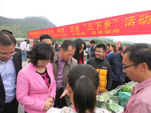 4月9日上午,由惠州市科协和惠阳区科协、文明局、良井镇府共同主办的惠州市惠阳区2015年文化、科技、卫生“三下乡”活动在良井镇矮光村隆重举行。惠州市科协副主席黄宗太、惠阳区副区长朱文转等出席活动。参加此次活动的人员还有市科协相关部室的领导,惠阳区25个相关单位的80多名业务骨干和科普志愿者,以及良井镇干部群众和学生代表等600多人。