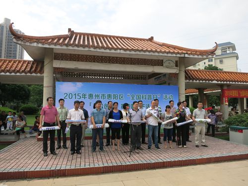 9月22日上午,惠州市惠阳区在淡水人民公园举办2015年“全国科普日”暨创建广东省公共文化服务体系示范区系列活动,吸引了大批市民和学生前往参观咨询。惠州市科协副主席黄宗太、惠阳区副区长朱文转与市、区两级科协、区府办、文广新局、文明局等有关部门负责人出席了活动。