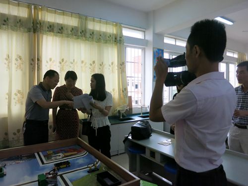 5月17日上午,惠州市惠阳区科协主席林庆财带领有关人员到惠阳实验学校看望慰问刚刚参加完第16届广东省青少年机器人竞赛的参赛选手和指导老师,向他们道贺的同时,对该校锐智队备战全国竞赛的情况进行了指导。