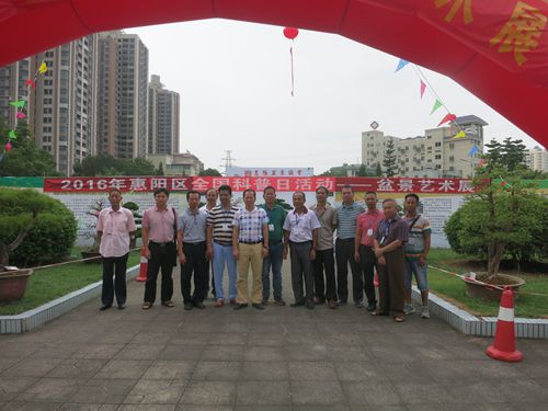 9月30日上午,惠州市惠阳区科协主席林庆财带队到惠阳区首届盆景文化艺术展览会现场参观指导,看望盆景协会部分参展会员,详细了解展览会的组织运作、安全保卫、作品交易及社会效益等相关情况,帮助解决展区存在的困难和问题。对会员们的精湛技术和精美作品表示十分赞赏,对他们的辛勤劳动和无私奉献致以亲切问候。
