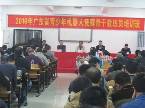 11月11日上午,由省青少年科技中心和省青少年科技教育协会主办的2016年广东省青少年机器人竞赛骨干教练员培训班在惠阳实验学校开班,共有160人参加培训。省青少年科技中心副主任李耀庭、惠州市科协副主席黄宗太、惠阳区科协主席林庆财等出席了开班仪式。
