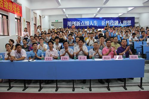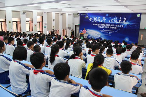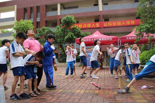 活动仪式上,莫祖军发表了热情洋溢的致辞,对各位领导、老师的莅临指导表示热烈的欢迎,并向大家作了题为《文化强则国强,科技强则国盛》的科技教育经验介绍。惠阳华附创办三年来,始终把科技作为素质教育的重要内容,举办科技节、开设科技活动课程、邀请专家授课、组织师生外出参观学习、积极参加省市区举办的各类科技大赛等一系列活动,成功申请科技创新专利3项;获得省、市、区级奖项达300多人次,其中,今年5-6月份,该校学子在首届“华附联盟”科技发明大赛获得4项一等奖(共7项)和10项二等奖(共21项)、在第17届广东省青少年机器人竞赛又荣获2个二等奖和1个三等奖、在第十五届广东省少年儿童发明奖评选活动中再获1银5铜和8项创新奖及优秀组织奖好成绩;被授予“惠州市青少年科学教育特色学校”、“惠州市青少年科技创新优秀组织奖”、“惠州市电脑机器人大赛优秀组织单位”、“首届华附联盟科技发明大赛优秀组织单位”和“第十五届广东省少年儿童发明优秀组织奖”等荣誉称号。刘茂辉也结合学校发展实际,以《革故鼎新 创建特色》为题,从锁定好方向、开设好课程、搭建好平台、组建好团队、发展好队伍和查找好差距等六个方面,对学校科技创新活动的组织开展工作经验进行了分享交流。惠阳华附的“六好”科教经验被广泛认可。同时,惠阳华附的学生们还表演了快板、三句半、环保时装秀和大合唱等精彩节目。