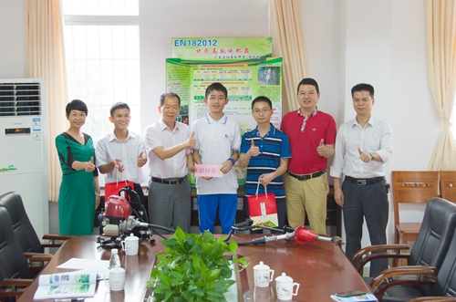 第33届广东省青少年科技创新大赛于4月1日在华南农业大学圆满落幕,惠阳区师生获得了3个一等奖、8个二等奖、3个三等奖和8个专项奖的历史好成绩。其中,惠阳高级中学熊明锐同学的《甘蔗高效施肥器》和华南师范大学附属惠阳学校江娜老师的《滚速力学演示棒》分别荣获青少年科技创新成果项目和科技辅导员科教制作类一等奖,并将代表广东省参加今年8月在重庆市举行的第33届全国青少年科技创新大赛,创造了惠阳区该项赛事的历史新纪录。