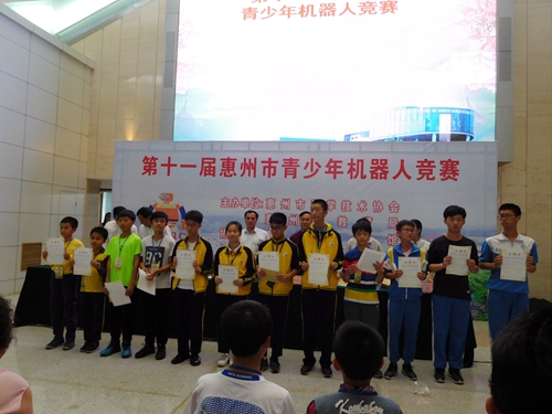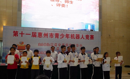 4月21日,第十一届惠州市青少年机器人竞赛在惠州科技馆举行。惠阳区22支代表队参加竞赛,获得了3个一等奖、7个二等奖、12个三等奖和2名优秀教练员的好成绩。