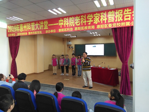 3月11-15日,由惠州市、惠阳区科协和惠州市、惠阳区教育局共同组织的“2019年惠州科普大讲堂---中科院老科学家科普系列报告会”宣讲报告会在惠阳区举行。中科院孙万儒、高登义等2位老科学家分别到惠阳区14所中小学校、坝尾社区以及教育局等作巡回科普报告,3000多名师生、100多名干部群众和社区居民以及100多名科技辅导员聆听了科学家们的精彩演讲。