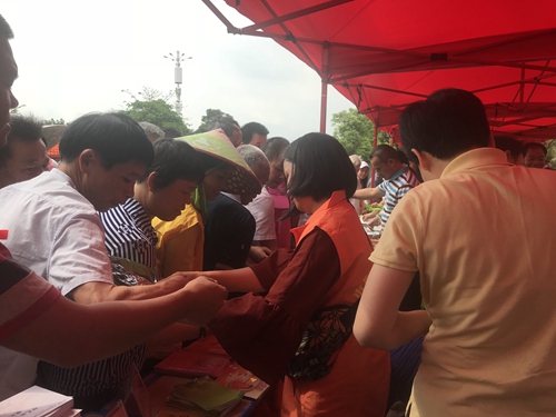 活动现场,各相关部门搭起咨询台、摆出宣传展板,热情向前来参加的群众发放科普宣传小册子和各种政策法律法规的宣传资料,并现场宣传讲解农业种植技术和病虫害防治等知识,为农户提供专业的水产养殖、畜牧技术、辨别农产品真伪等技术咨询,讲解卫生医疗技术、消防安全等贴近广大群众生活实际的科普知识。活动受到前来参加活动的广大群众热烈欢迎和踊跃参与,不少摊位都站满了前来参观咨询的村民,有的甚至排起了十多米的长龙。此次活动共接受群众咨询300多人次,现场发放宣传资料90多种共计18000多份,发放生物有机肥一吨及农用物资、计生用品用具、医疗药品药具等一批。