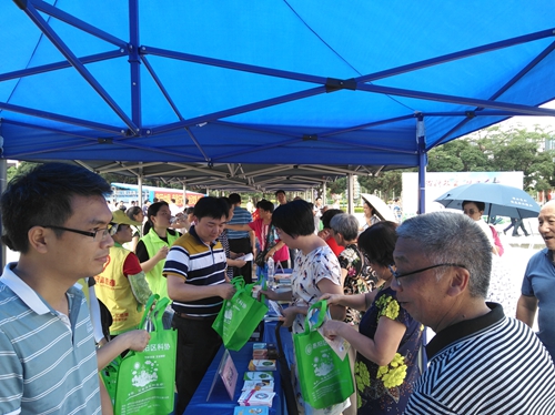 活动中,区普法办、区委文明办、区科协等相关部门,通过设立环境保护主题展板、派发宣传单张、现场接受咨询等方式,全面宣传环保政策法规,普及环保知识,宣传环保理念,吸引了广大市民群众积极参与。活动现场还设置了环境监测、执法设备器材演示和有奖游戏,受到市民的热烈欢迎。在主题为“环保大作战”的游戏区内,市民们饶有兴致地积极参与。大家秩序井然地排队,并按照指示,把垃圾分类好,从游戏中学习到环保知识。