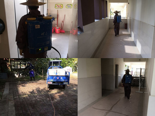 良好的“抗疫”局面,离不开后勤部门的坚实保障和得力措施。“抗疫”伊始,总务处就在莫校长的指示下,全面盘点物资保障的综合情况,并购置体温监测器、消毒液,口罩、紫外灯、移动消毒车等,以确保抗疫物质充足。同时,加大校园喷洒消毒工作力度,切实保障接下来的开学工作顺利展开。